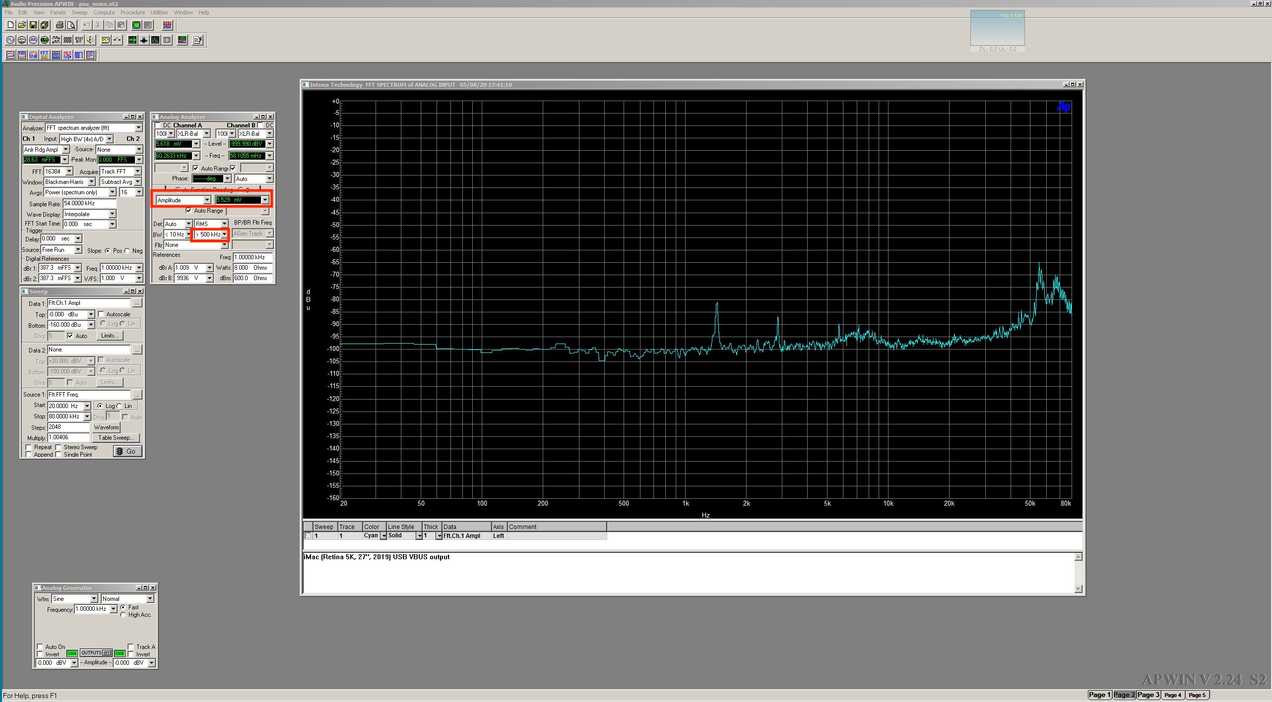 The bandwidth of the FFT plot is limited to about 80 kHz on this machine. So let's set the measurement bandwidth for the AC reading to 80 kHz, too.