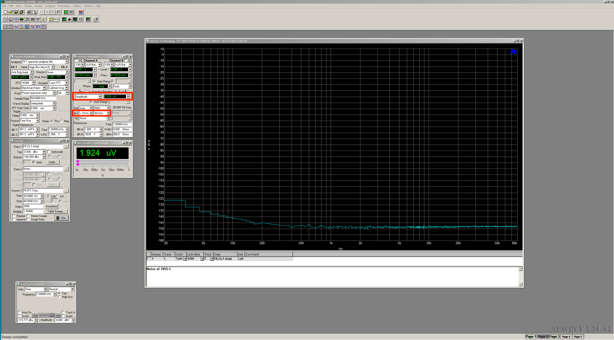At 22 kHz BW, the 7055-C has a residual idle noise of stunning 890 Nanovolts.